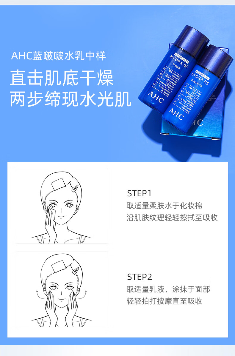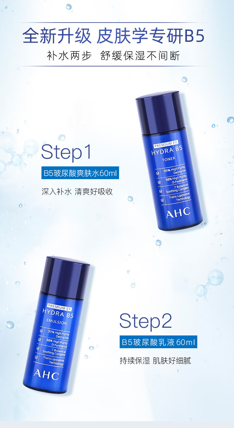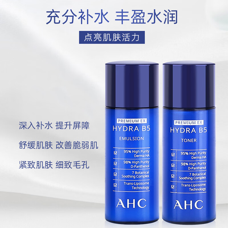 2. AHC专研B5玻尿酸水盈旅行套装女洗面奶水乳补水保湿洁面护肤中小样套盒 小样体验装【水20ml+乳20ml】