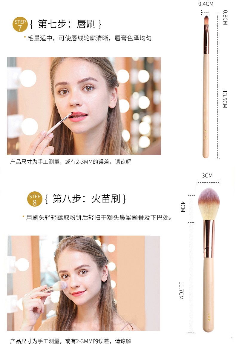 2. EAUN 化妆刷套装粉底腮红眼影修容遮瑕唇散粉眉刷初学者工具刷子全套 8支小太阳化妆刷+刷桶