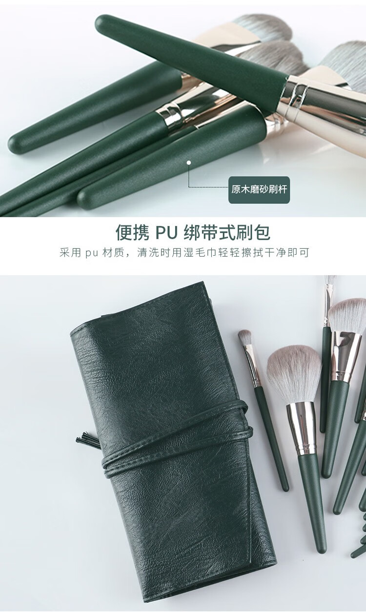 2. EAUN 【今天买,明天到】14支绿萝化妆刷套装粉底腮红眼影刷修容遮瑕唇散粉眼线眉刷美妆工具刷子全套 14支绿萝化妆刷+刷包