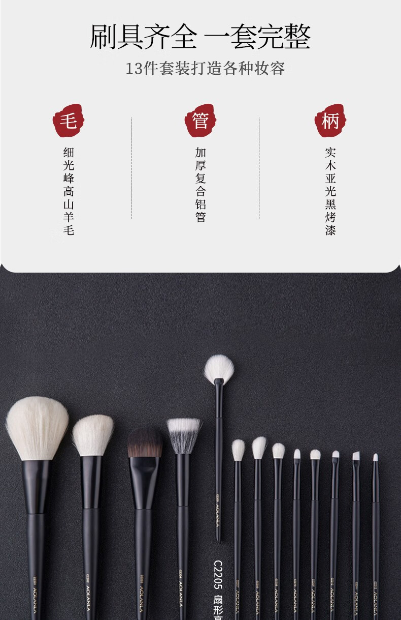 2. AOLANLA 美国大师级13支化妆刷套装动物毛散粉腮红眼影刷生日礼物送女友 墨影13支黑色套装