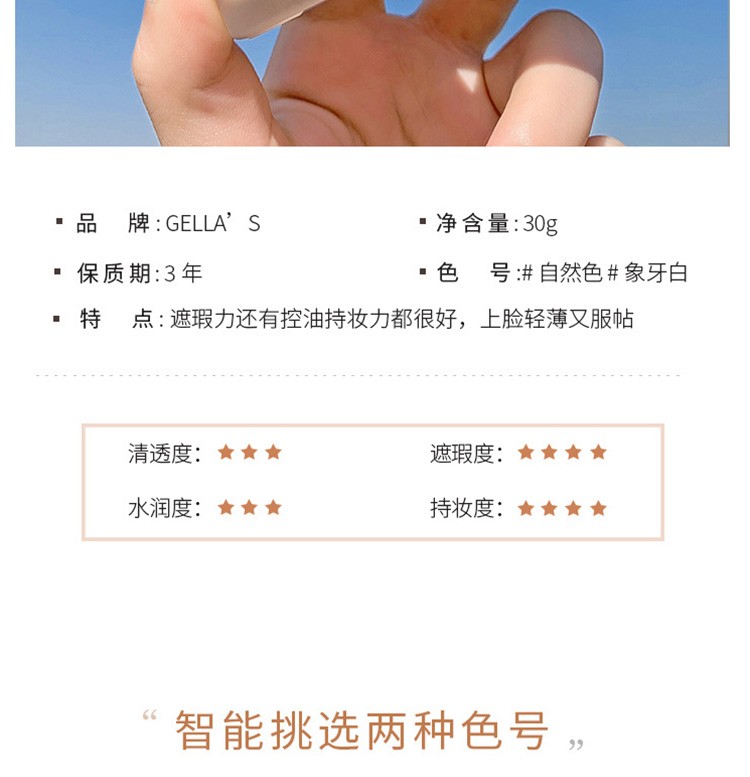 2. 【第2件 5折】Gellas小蓝盾粉底液小样小金盾持久控油不易脱妆油皮亲妈遮瑕隐形毛孔女学生党平价 01#象牙色